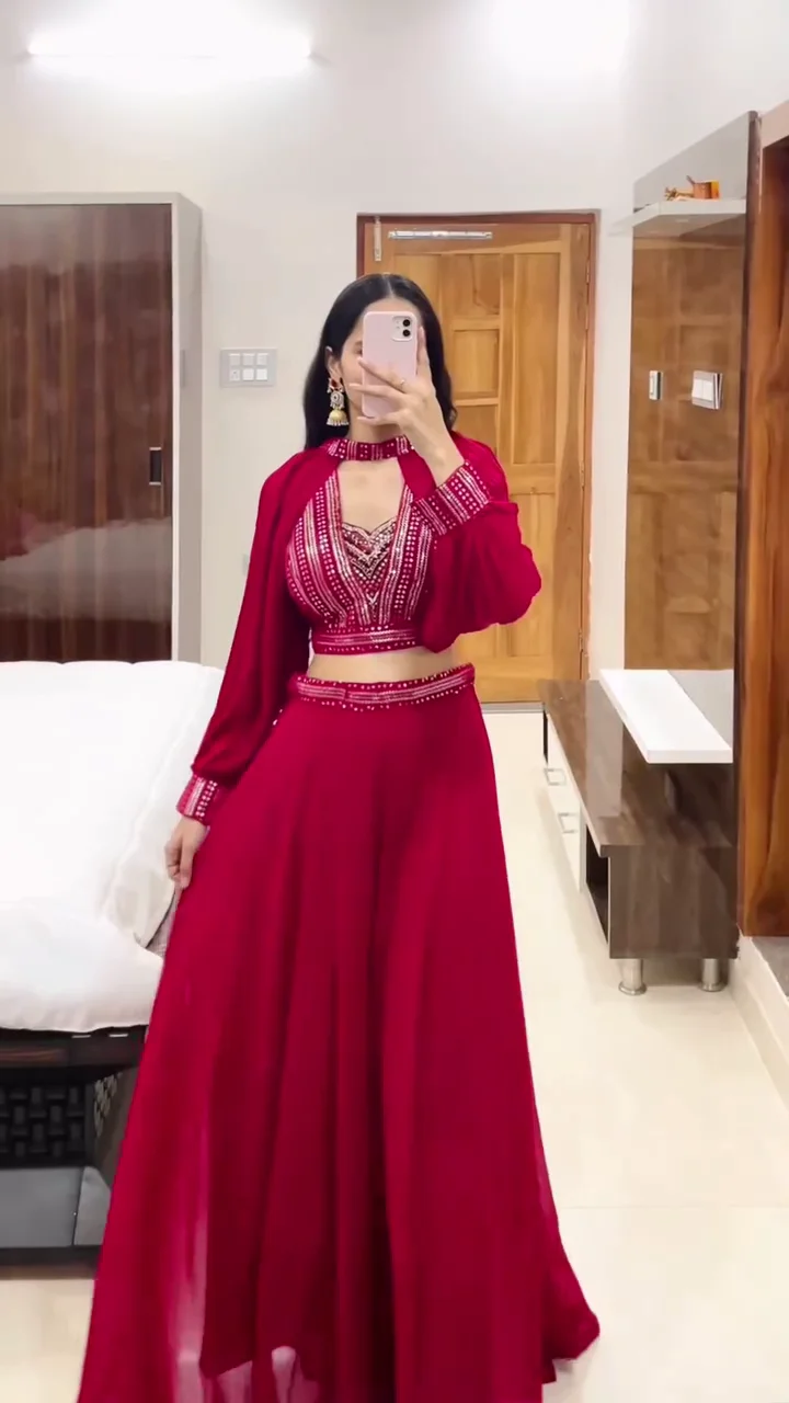 Women's Maroon Embroidered Lehenga Choli Set for Weddings Parties Festive