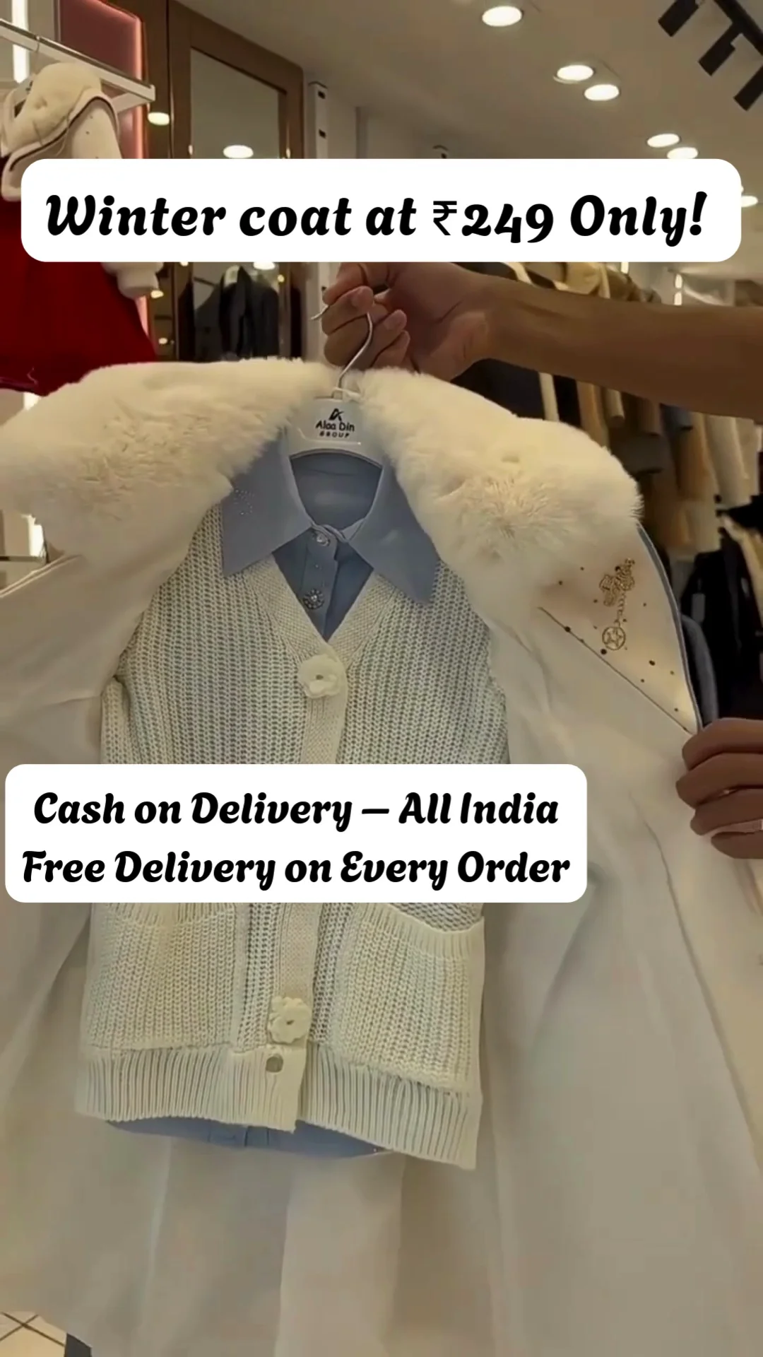 The promotional text emphasizes affordability and convenience, positioning the coat as a budget friendly winter essential. With an attractive price point and the assurance of cash on delivery along with free delivery across India, the image conveys great value for money. Overall, the coat is presented as a practical yet fashionable choice for winter wardrobes, combining warmth, style, and accessibility.