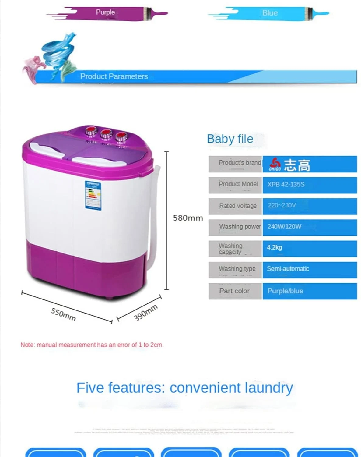 Semi-automatic Double Drum Washing Machine Semi-automatic Mini Small Washing Machine Washing And Stripping Dual-use Small Washing Machine