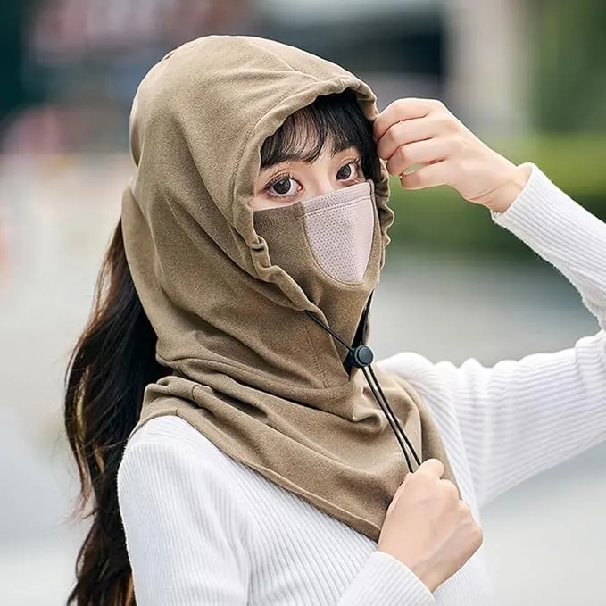 This winter hooded face cover is designed to provide all-around protection against cold weather, wind, and dust while maintaining everyday comfort. Combining a hood, neck cover, and face mask in one piece, it offers full coverage for the head, neck, and lower face. The sleek and modern design makes it suitable for both men and women.