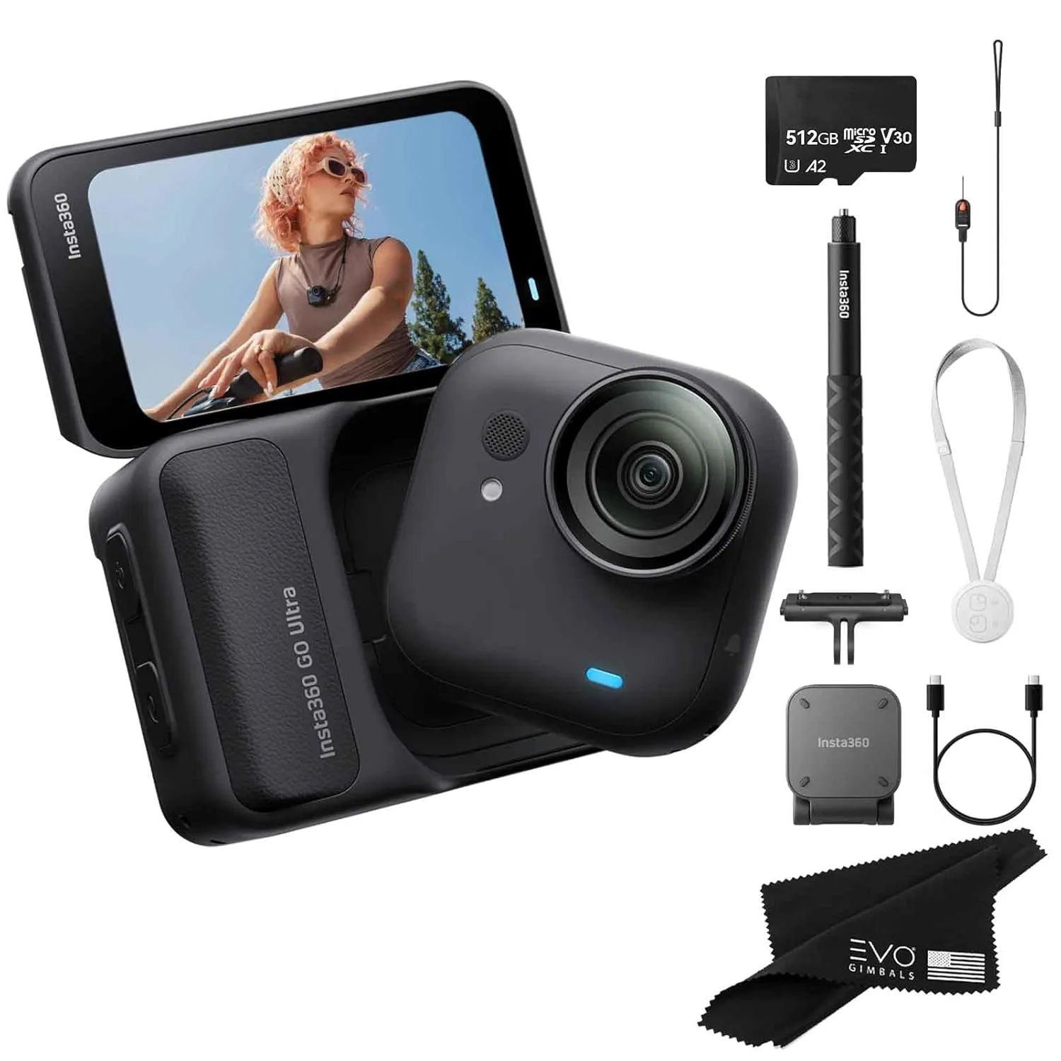 This complete bundle includes essential accessories such as a high-speed memory card, mounting base, charging cable, lanyard, and cleaning cloth, giving you everything you need to start recording right away. Easy to set up and simple to operate, the Insta360 GO Ultra is ideal for beginners and experienced creators alike. Compact, versatile, and packed with smart features, it’s the perfect everyday action camera for capturing life from every angle.