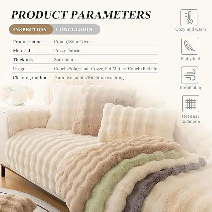 Plush Couch Cover, Sectional Sofa Cushion Covers with Non-Slip Bottom