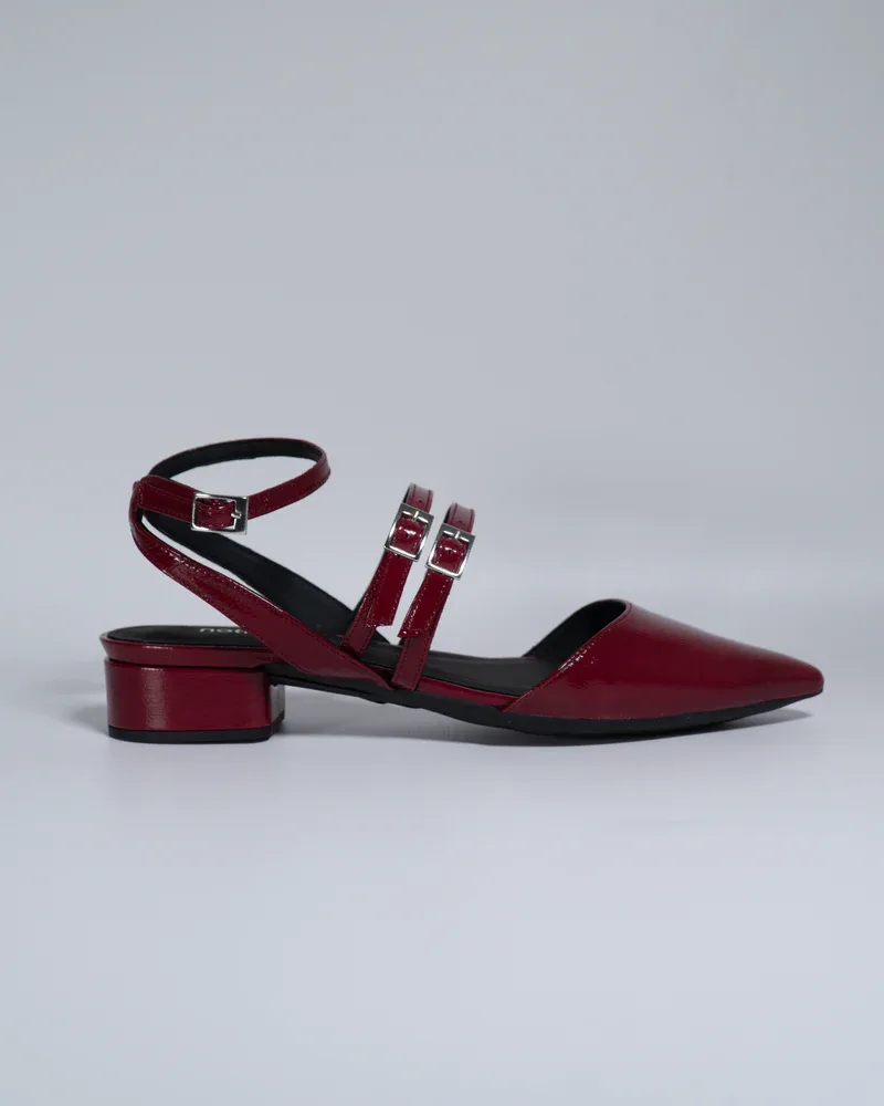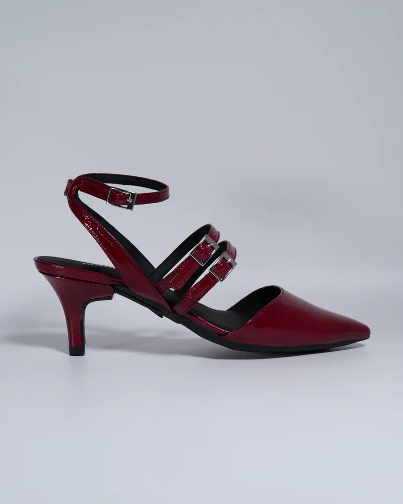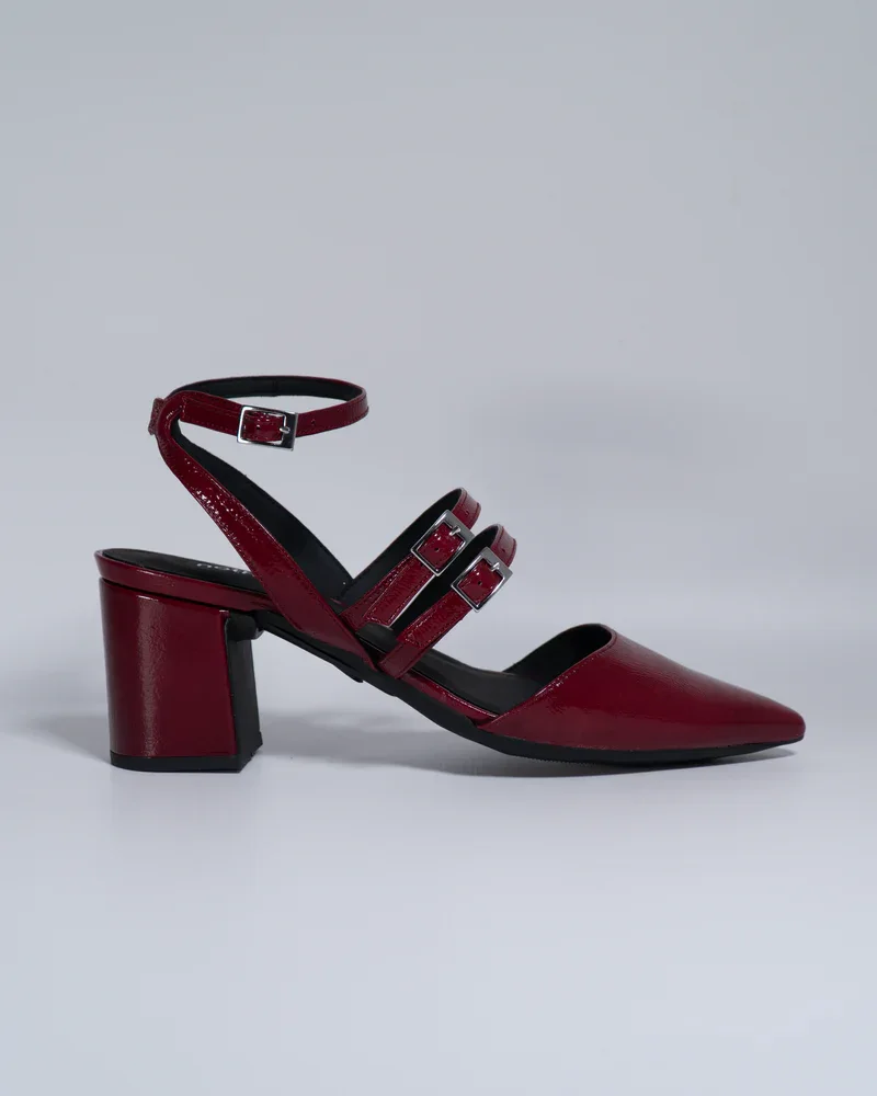 Step into effortless elegance with these Women’s Stylish Pointed Toe Block Heel Sandals, designed to bring together modern fashion and everyday comfort. These chic sandals feature a sleek pointed toe and stylish double buckle straps that add a sophisticated touch to your overall look. The deep wine-red finish gives the footwear a bold and classy appearance, making it perfect for women who love to stand out with subtle elegance.