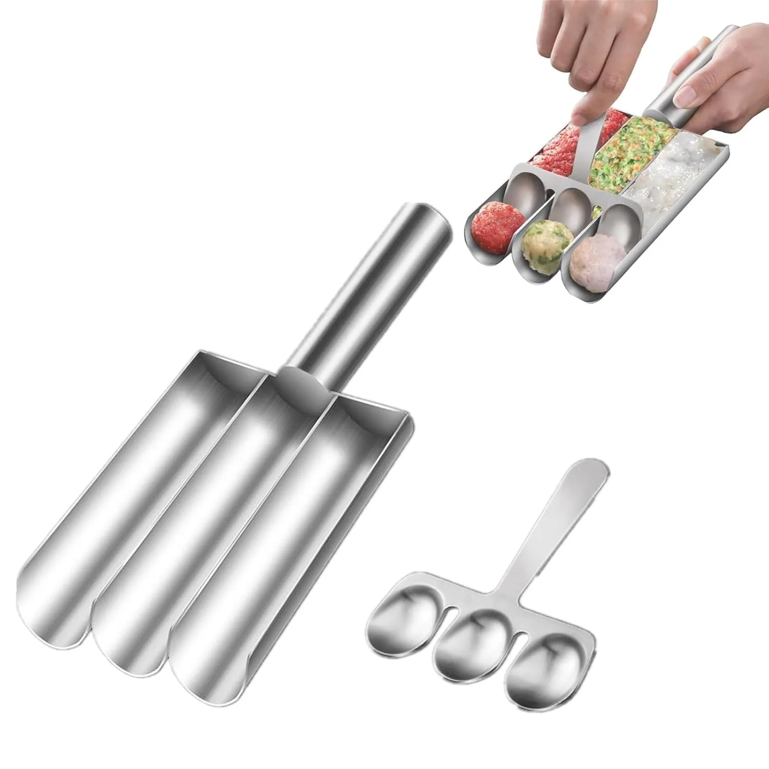 Triple Meatball Maker,Meat Baller Spoon with Cutting Spade